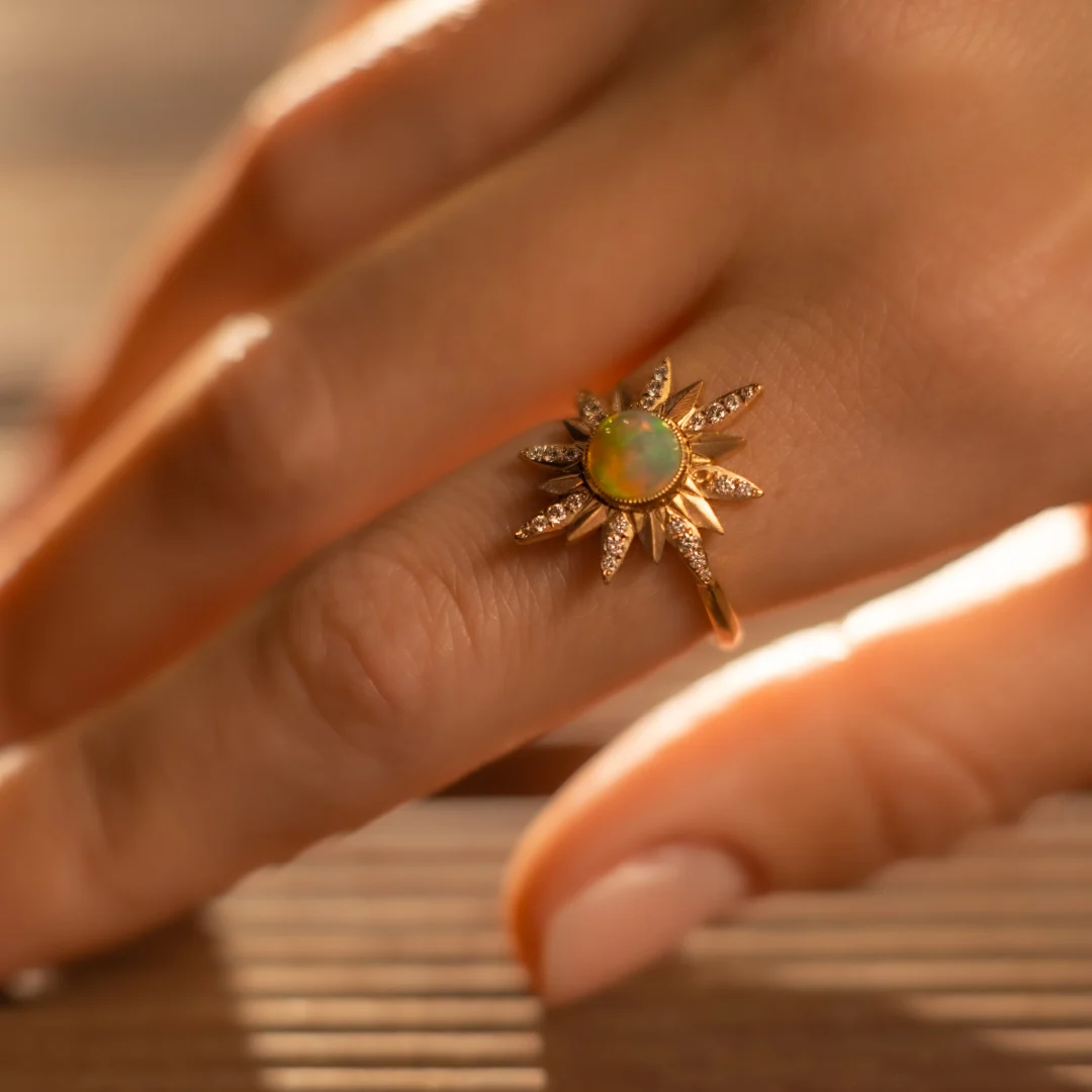 Véritablement magique, l’opale constitue dans notre collection « Ilios », le coeur de feu de notre talisman Ilios: découvrez vite ce soleil précieux et irisé !