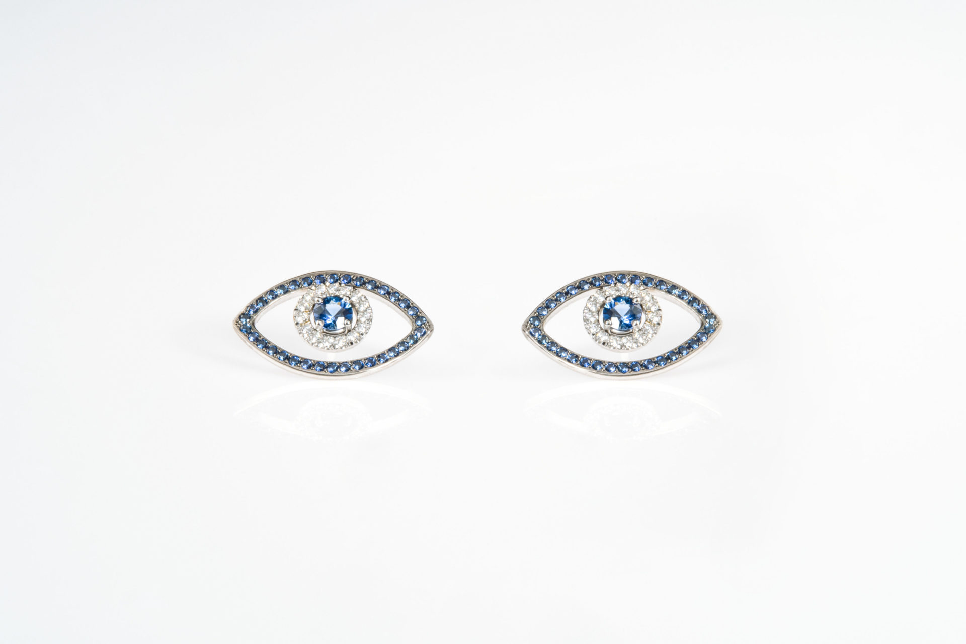 Als Erinnerung an unsere anderen Matakis sind diese Ohrringe so gestaltet, dass sie sanft auf dem Ohrläppchen sitzen. Besetzt mit zwei langen Reihen Diamanten, die eine blaue Saphir-Pupille umrahmen, werden sie zwei wahre Juwelen voller Brillanz und Feuer sein.
