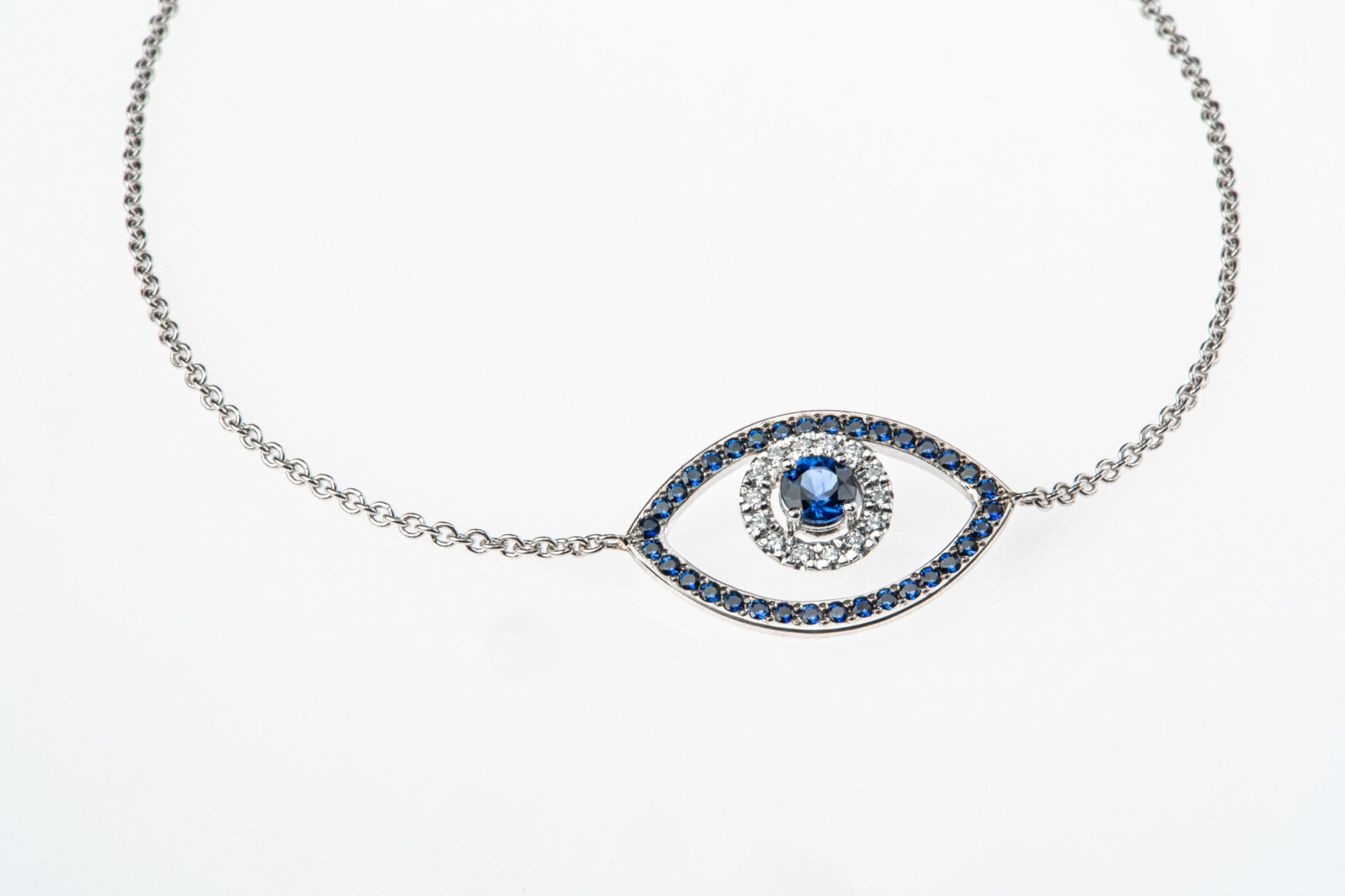 Das Blaue Auge, in Griechenland auch Matiasma genannt, stellt durch seine tiefe Farbe und die Stärke des Blicks, den es reflektiert, einen Schutzschirm gegen den bösen Blick dar.