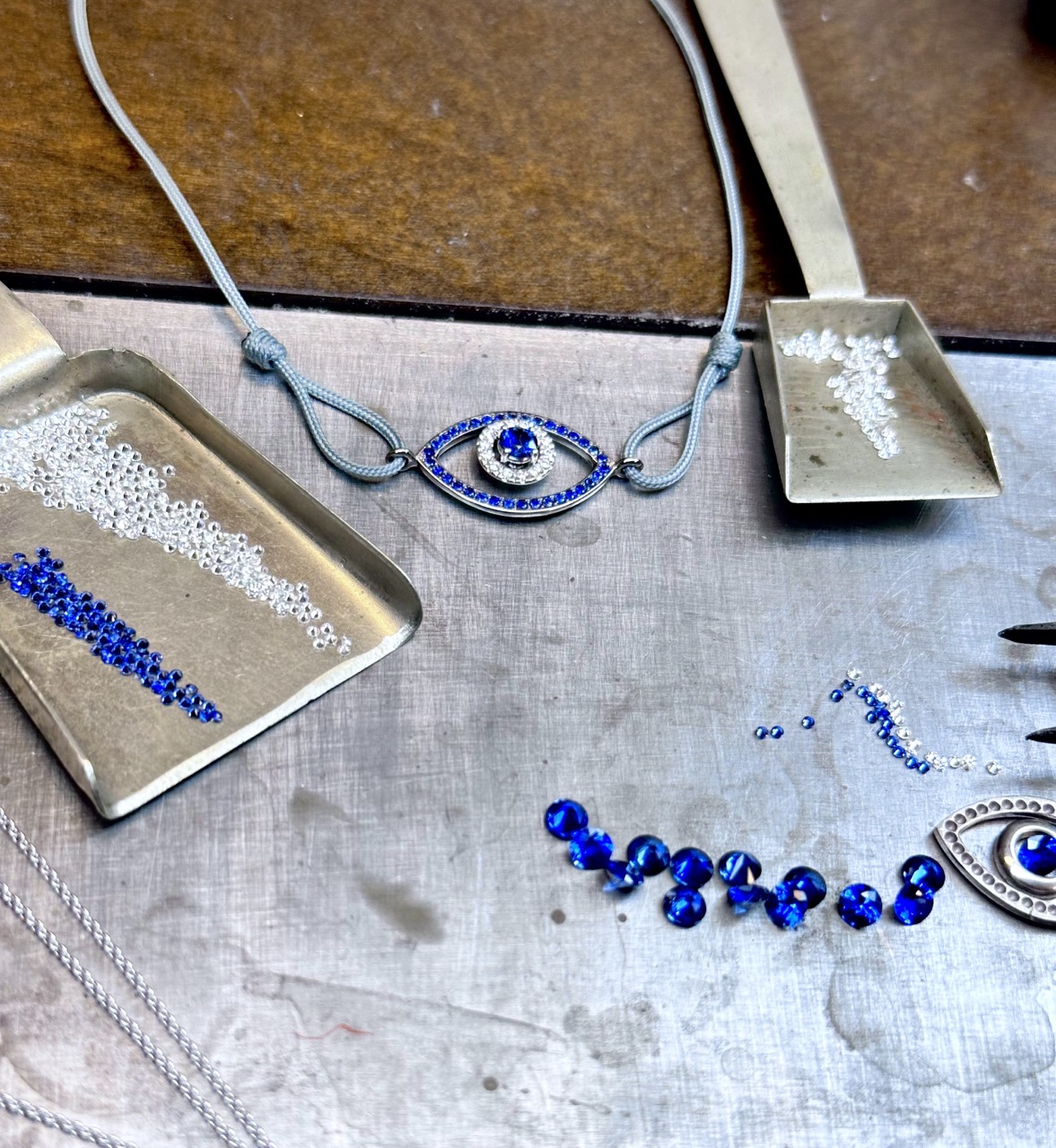 On each of our pieces, the opsi-jewels mark “the eye” is printed in gold. It is naturally this symbol that we have chosen to embody our collections, the Eye which chases away the evil eye and brings you happiness and peace of mind, a true talisman.